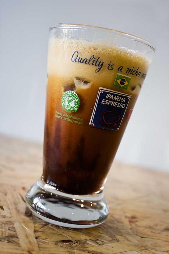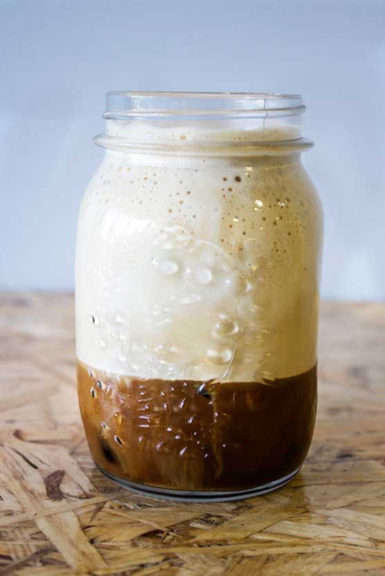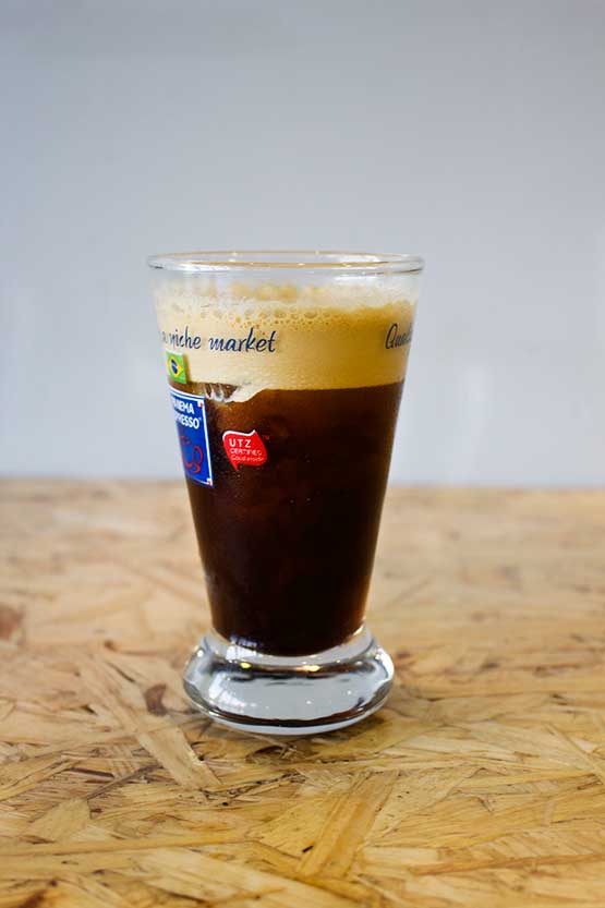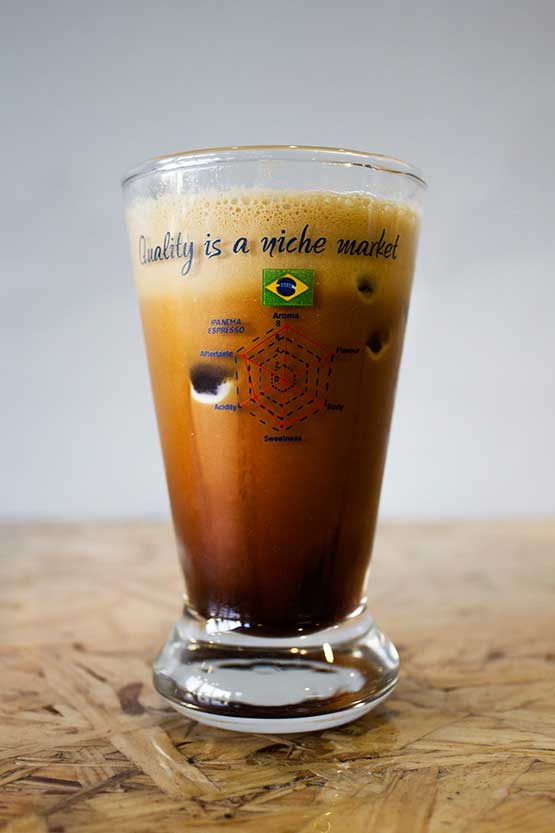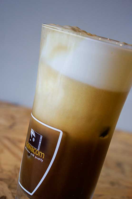 Μια δικιά μας παραλλαγή του Freddo Capuccino με το γάλα ανακατεμένο μαζί με τον καφέ σε ένα ποτήρι τεραστίων διαστάσεων!