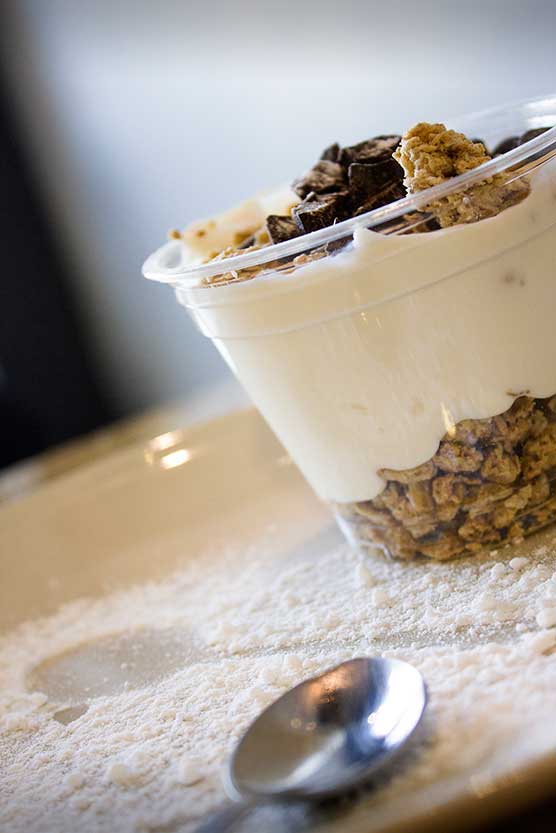 Η παραγωγή του Freddo Capuccino διαφέρει διότι χρησιμοποιούμε το γάλα ως βάση στο ποτήρι και προσθέτουμε τον καφέ στο τέλος.
